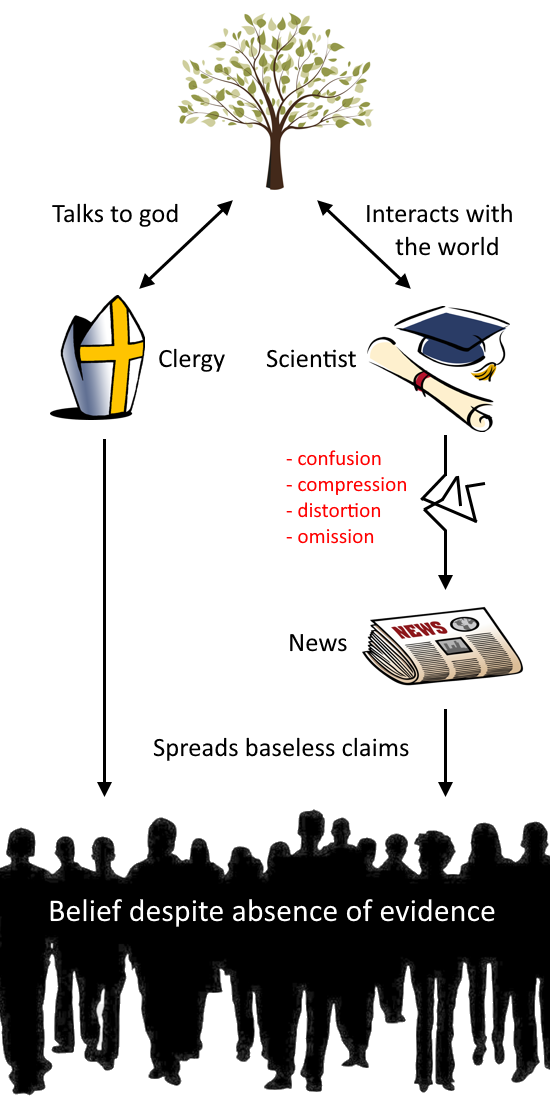 Old drivers of confusion are perpetuated by modern newspapers. It is no longer god who tells us things, it's science. We have replaced one deity for another, but the thing that remains unchanged is belief despite absence of evidence.